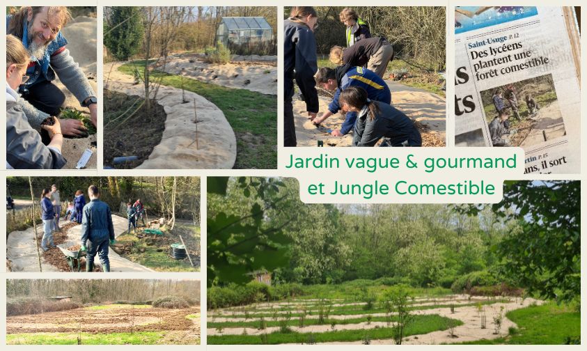 Avec l’aide des élèves de l’école du LEAP de Louhans, de nos écovolontaires Insa et Sophie, et bien sûr avec l’appui passionné et expérimenté d’Audrey des Forestibles, le jardin se transforme !