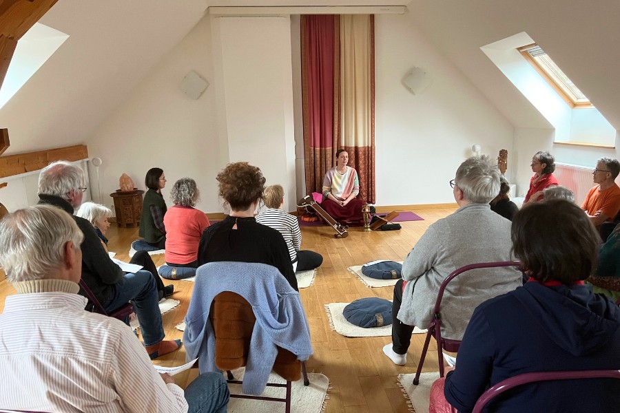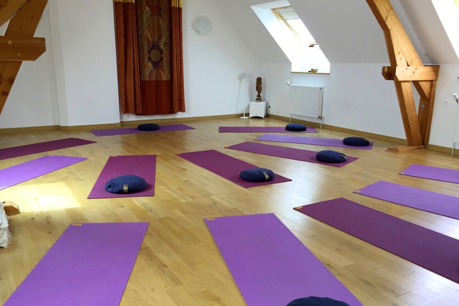Les salles sont équipées de tapis de yoga, de zafus, de chaises, d’un paperboard, d’un système audio, vidéo et projection.